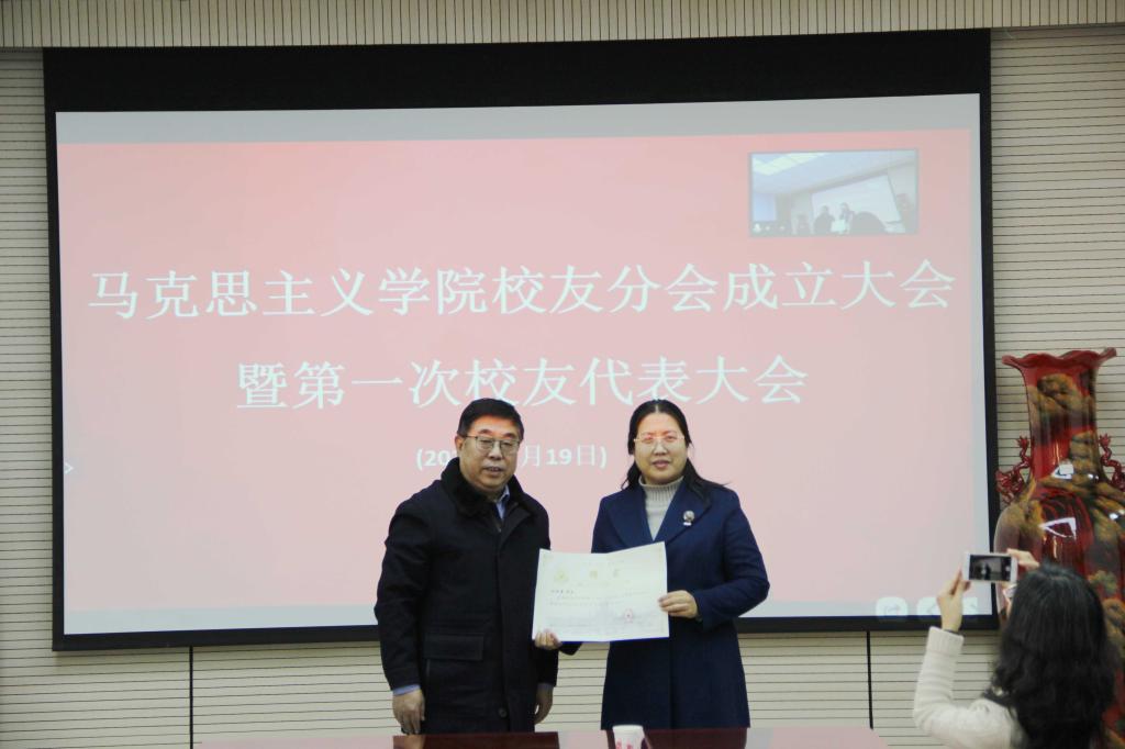 新葡萄8883官网AMG校友分会筹备工作领导小组组长、学院院长刘振霞当选校友分会会长。她指出,新葡萄8883官网AMG自建院以来,一直秉持“马院姓马,在马言马”的宗旨,发扬“求实”、“创新”的精神,贯彻“立德树人、固本铸魂、打造特色、追求卓越”的院训和目标。学院的蓬勃发展离不开广大校友们的支持与帮助,希望通过校友分会这一桥梁,能够创建起培养社会主义接班人的单位,更好地发挥新葡萄8883官网AMG立德树人的重要作用。