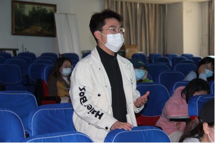 迎校庆,聚校友!新葡萄8883官网AMG百廿校庆系列活动“校友面对面”座谈会第一期于4月1日下午在新葡萄8883官网AMG报告厅顺利举行,2014级校友孙少春应邀座谈,院党委副书记赵存东出席,学工办主任兼团委书记高妙玲主持本次讲座,本科生代表40余人到场,其余同学通过腾讯会议线上参会。