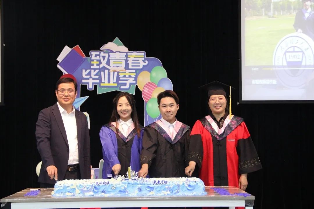 毕业典礼后的庆祝仪式上,学院为同学们订制了包含每位2023届毕业生名字的毕业蛋糕和毕业礼物。院领导和同学们共同切开毕业蛋糕,大家一起分享喜悦和甜蜜。