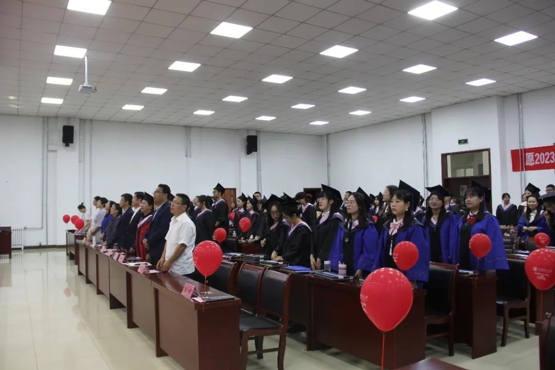 典礼在嘹亮激昂的国歌声中拉开了帷幕。院长刘振霞宣布了学院2023届毕业情况。她代表学院向圆满完成学业的毕业生送上祝贺和祝福。她强调,同学们生逢其时,与伟大的时代同向同行、大有可为。希望马院的每一位毕业生在今后的人生道路上:保持初心、乐观坚定;修养己身、立德为上;敢于担当、善于作为。坚守百年梦想,厚植爱国情怀,在时代浪潮中砥砺前行、奋发有为。