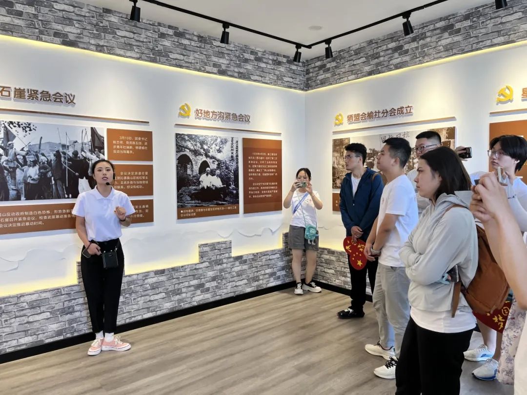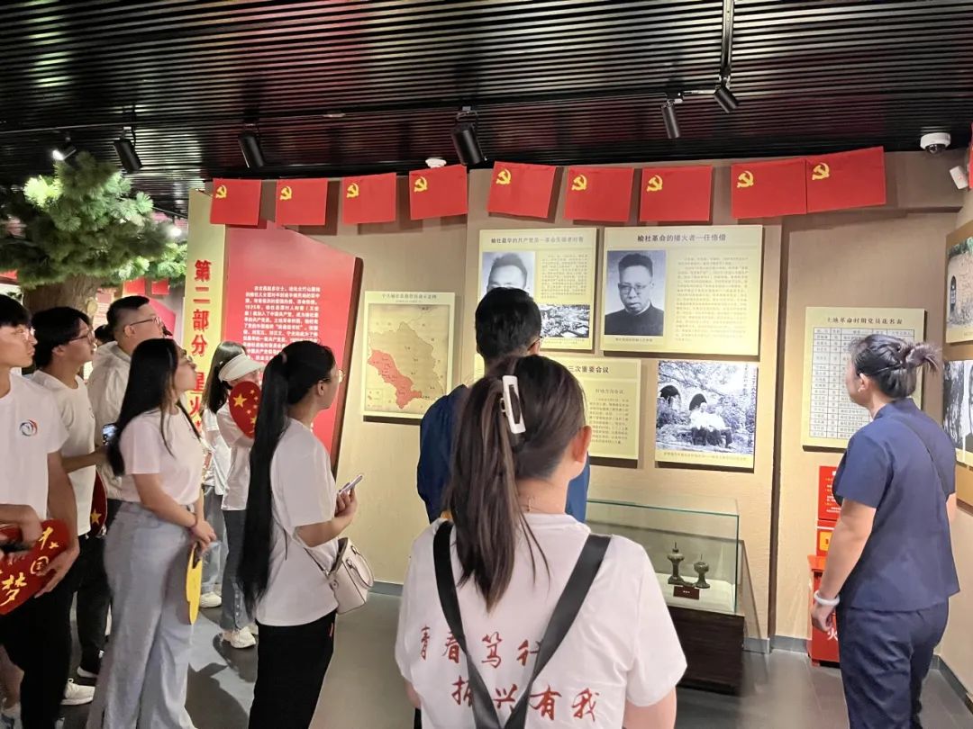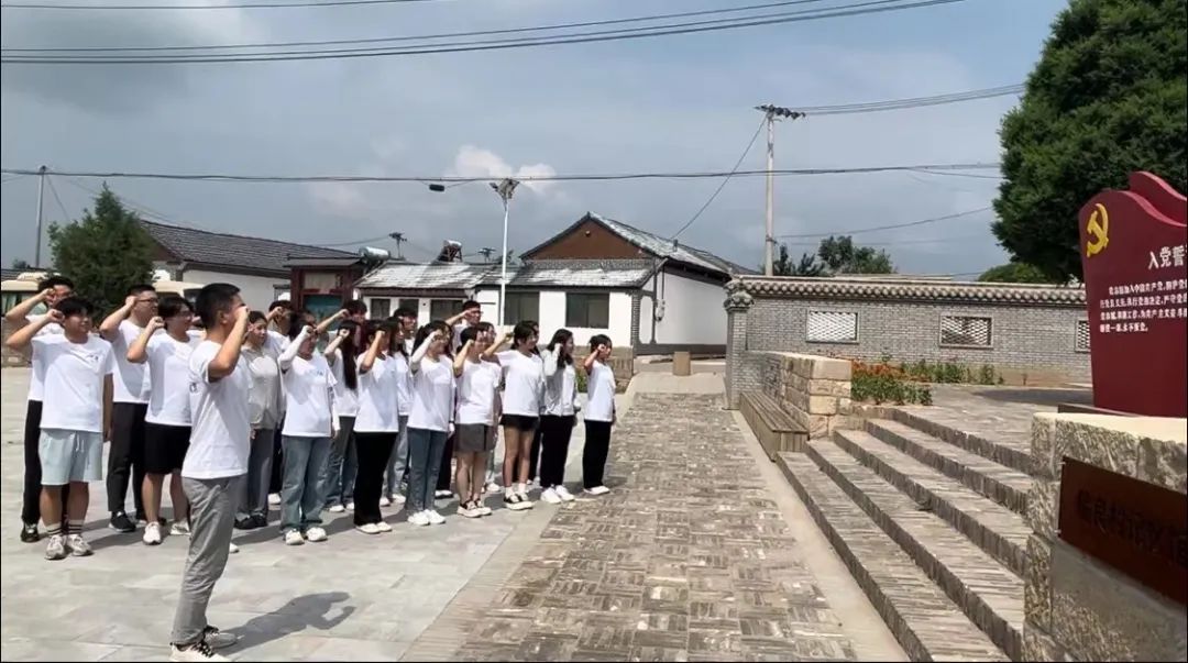 实践队员们在榆社博物馆、偏良村中共榆社临时工作委员会纪念馆以及河峪乡三块石红色基地开展红色教育,深入了解该地区的红色历史,传承红色基因,发扬红色荣光。在展馆门前,党员同志们面对党旗,重温入党誓词。