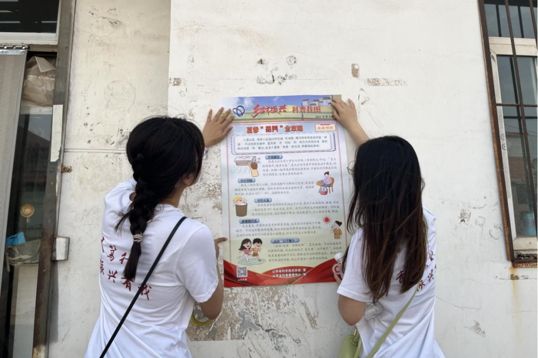 实践队员们前往北泉社区开展志愿活动,打扫街道、清理杂草,并在社区周边张贴乡村振兴的科普挂图,向社区居民进行科普宣传。