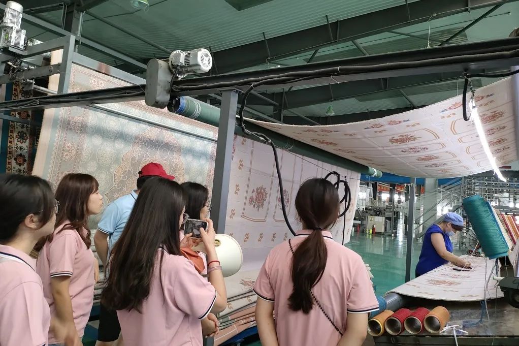 实践队员们走访了当地龙头企业代表振东集团和雅瑞地毯有限公司。