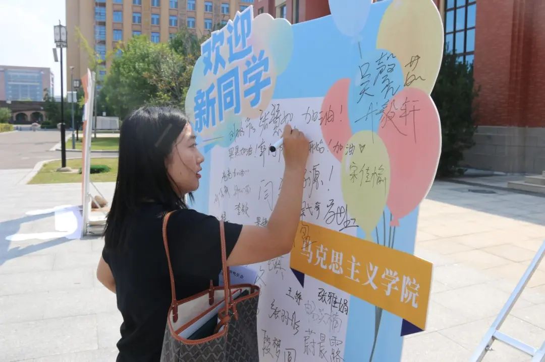 一张张青春脸庞,一阵阵欢声笑语,与马院的第一张合影,在签名墙上留下的签名,都将成为萌新们迈向下一段青春旅途的重要印证。