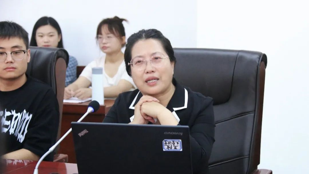 刘振霞以“悟校史底蕴,担使命前行”为题,作了关于校史院情与爱校荣校的报告。她从学院历史沿革、师资队伍、人才培养、科学研究、服务社会等方面为同学们进行了详细的介绍,并希望同学们自觉用新时代党的创新理论武装头脑,带头做马克思主义的学习、研究与传播者。