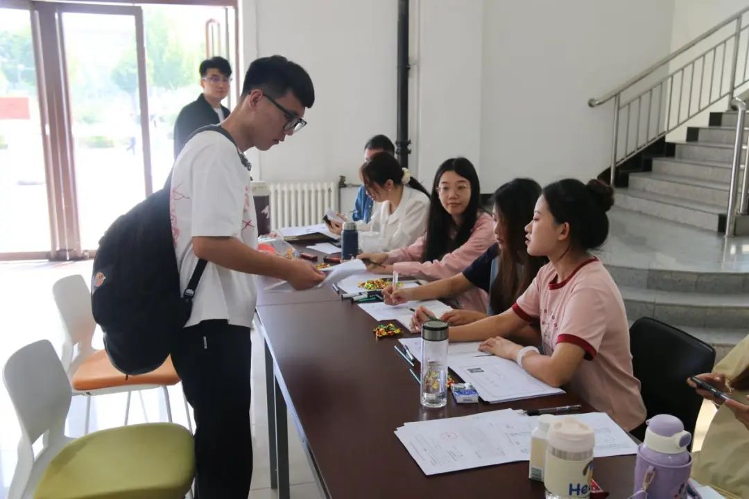 从上午9点开始,陆续有研究生新生前来报到。工作人员仔细核对每一位研究生的证件、录取通知书等信息,耐心讲解报到流程,为新生发放资料手册,力争让每位新同学都暖心、便捷、顺利地完成入学报到。