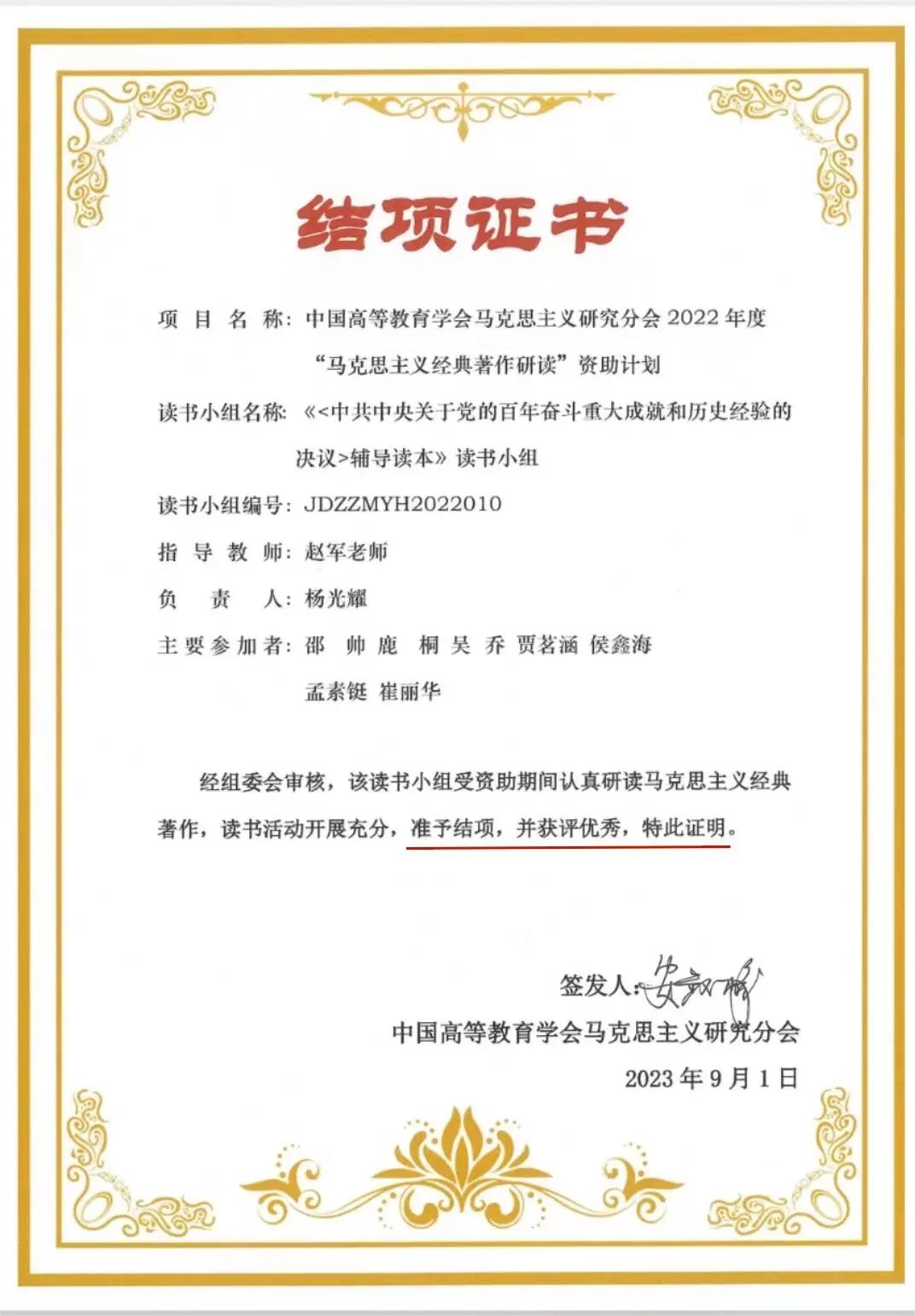 近日,中国高等教育学会马克思主义研究分会2022年度“马克思主义经典著作研读”资助计划公布了结项结果。新葡萄8883官网AMG被评为“2022年度优秀组织单位”,学院青年教师赵军博士被评为“优秀指导教师”,学院求实读书小组荣获“优秀读书小组”称号。