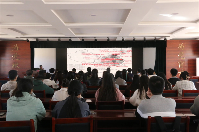 在晋绥文化教育培训中心三楼会议室,古交市委党校阎晓喻老师为马院师生作了题为“战火中的丰碑”的专题报告,重点讲述了晋绥八分区在战争年代做出的突出贡献,阐述了八分区军民在艰苦卓绝的环境中所锻造的对党忠诚、胸怀全局、团结奋斗、担当作为的战斗精神。