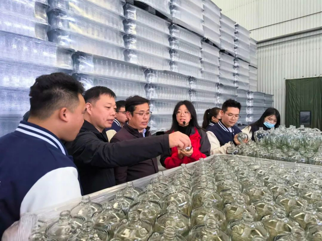来到山西杏花产区酒业集团酿造有限责任公司酿酒车间,大家近距离了解了传统制曲工艺和酿造工艺。在观宇玻璃制品厂,师生们走进工厂车间,实地参观了玻璃烧制、成型、冷却、上釉一整套工艺体系,亲身感受到新时代贾家庄产业振兴的丰硕成果。