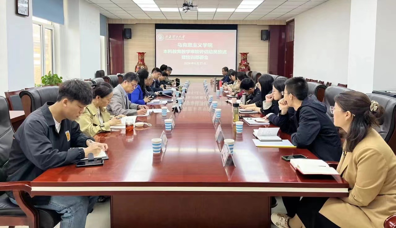 学校本科教育教学审核评估专家张洪斌教授出席会议。院领导李济民、刘振霞、甄炜、姚建军、张俊义,以及思政系主任、各教研室主任、课程负责人,党政办主任、教科办负责人、团委书记,实验教学中心负责人、教学秘书等参加会议。会议由姚建军主持。