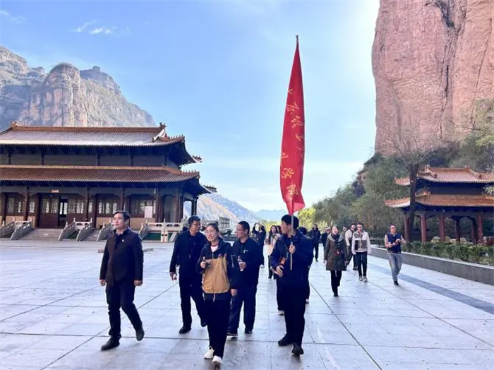 为学习和弘扬新时代太行精神和伟大抗战精神,充分发挥先锋模范作用,研学活动的最后一站走进了“人民军工的摇篮”黄崖洞。老师们在黄崖洞基地前广场集合举行了开班仪式,随后沿着先烈的足迹,穿过陡峭的翁圪廊峡谷,倾听崔振芳小烈士的事迹,瞻仰黄崖洞物资仓库,深刻感悟和学习革命先烈顽强不屈的战斗精神。