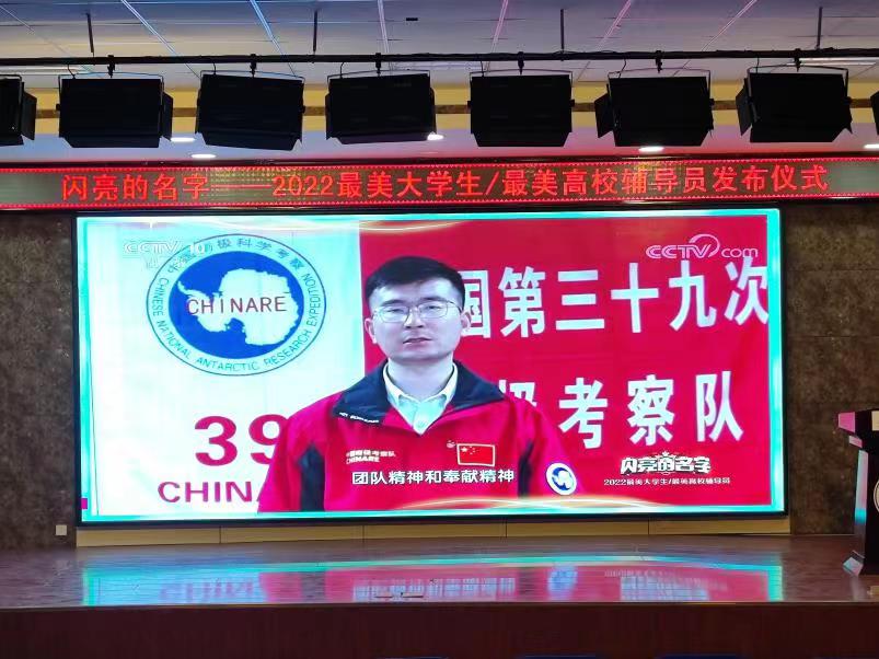 其中,“最美大学生”王煜尘同学备受瞩目。当他出场时,学院报告厅内响起了阵阵掌声。王煜尘是新葡萄电气与动力工程学院2019级博士生、极地科考团队成员,28岁的他曾先后三次参加南极科考,成为中国极地科考史上在站时间最长的大学生。他在发布仪式中激励同学们努力学习,勇攀科研高峰,把论文写在祖国的大地上。