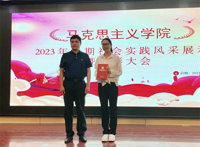 甄炜宣读了《新葡萄8883官网AMG2023年暑期社会实践表彰人员名单》,决定授予闫卓恩、董航“2023年暑期社会实践优秀指导教师”荣誉称号;授予张婧、史乐韵、王凯、于鹏博“2023年暑期社会实践优秀实践队长”荣誉称号;授予张玉娜、高欣雅、王宇航、方惠子、余梦琪、薛凯珍等6人“2023年暑期社会实践优秀通讯员”荣誉称号;授予畅笑楠“2023年研究生支教团优秀支教志愿者”荣誉称号;授予王建毫、郭子琪、杨一凡等26人“2023年暑期社会实践优秀实践队员”荣誉称号;授予于鹏博、敬杰雄、曹丽剑、卫晓鑫等16人“2023年度山西省高校思政课教师专题研修班优秀志愿者”荣誉称号