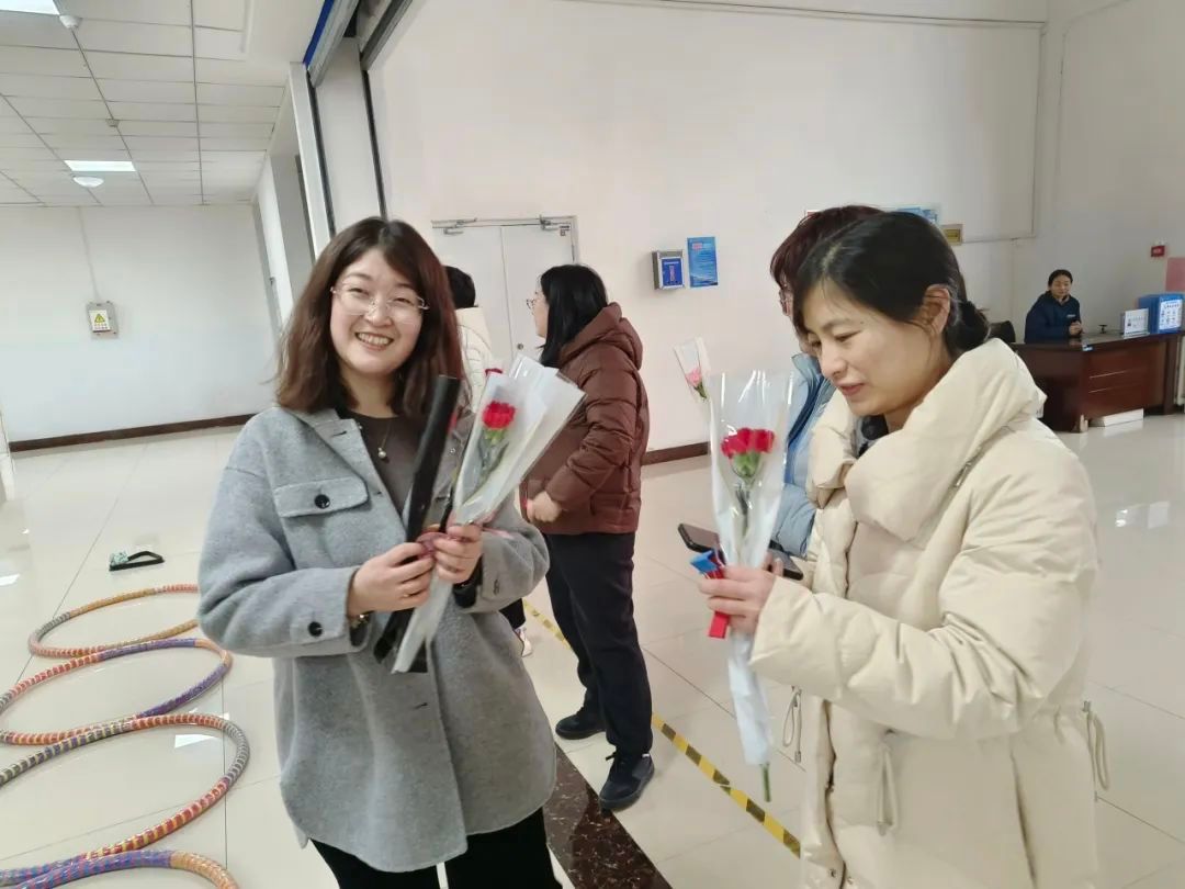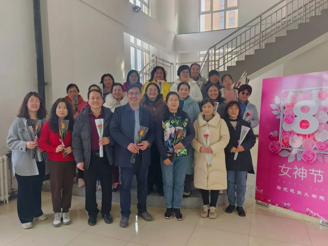 在装点温馨的马院一层大厅,活动拉开了序幕。带着满满的诚意与温暖,学院领导向全体女教职工送上诚挚的节日祝福。