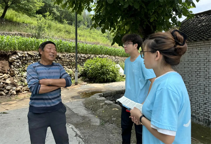 实践队员为松庙村村民讲解马克思主义理论相关知识和我国乡村振兴发展成效,并调研村民的生活水平和经济情况。