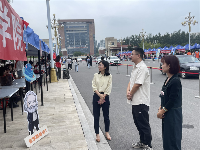 迎新工作筹备期间,新葡萄党委书记李济民和院长刘振霞就做好迎新工作多次进行安排部署。迎新当天,院领导来到迎新工作现场,询问新生报到情况,与新生及家长进行亲切交流。