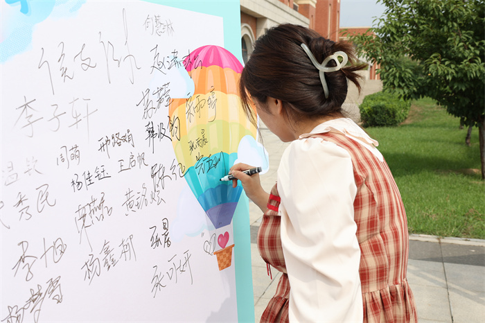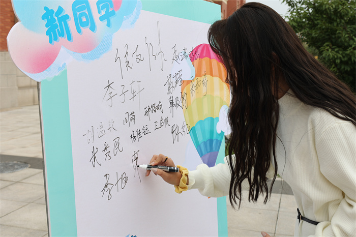 新生们满怀憧憬,纷纷在签名墙前拍照签名,每一张笑脸,每一笔签名,都定格了青春洋溢的瞬间。这不仅是新的学习生活的起点,更是青春旅程的美好印记。
