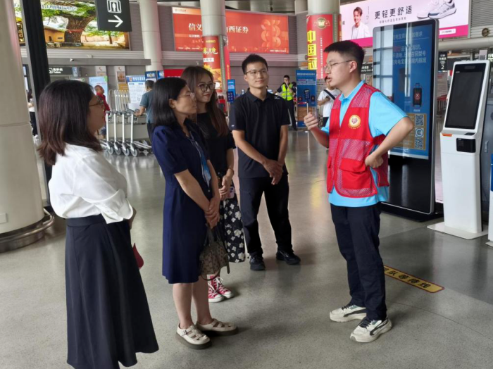 马院“赤心筑梦 航途砺行”实践队赴武宿机场有序开展志愿服务活动。队员们承担登机牌打印、值机引导、行李托运协助等工作,并为老年及特殊旅客提供帮扶,维护候机秩序。实践中,队员们通过观察流程、亲身体验操作和复盘总结,了解民航服务体系及岗位责任。活动结束后,队员们认真撰写实践报告,分享民航工作者的故事与感悟,充分展现出当代青年大学生的精神风貌。