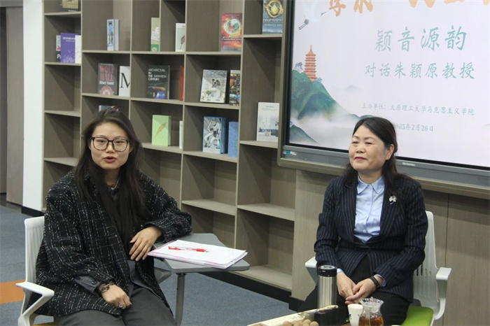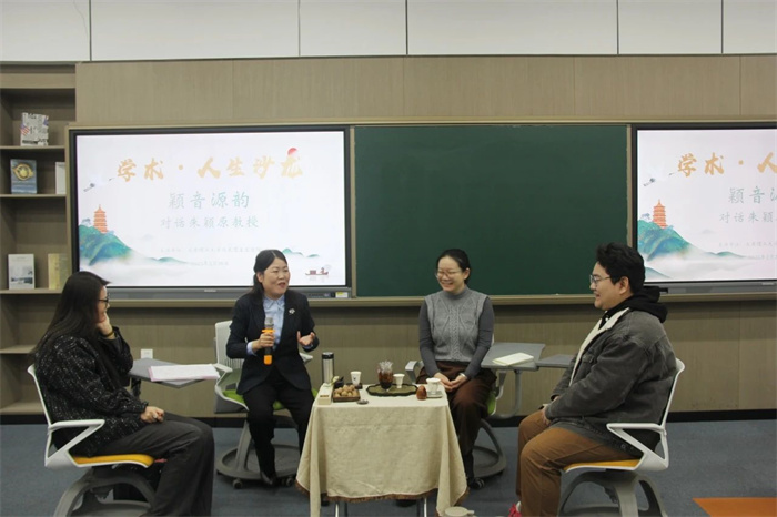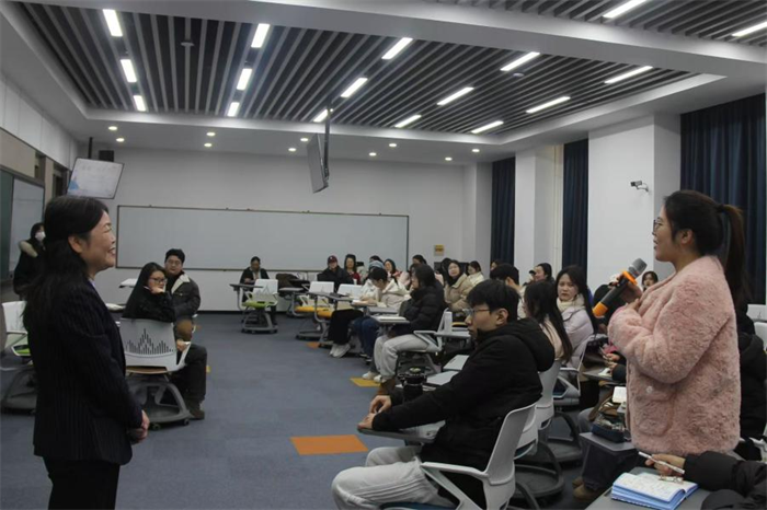 此次沙龙以“访谈+互动”形式展开。朱颖原教授结合自身丰富的学术与人生经历,围绕“如何指导学生确定论文选题”“如何在教学中提高课堂吸引力”等议题,深入浅出地分享了自己的见解。她强调,教师应如一条流动的河不断提升自我,方能给予学生新知并为其解惑。同时她提出“内容为王”的教学理念,认为教学中应关注“亮点、热点、疑点”三大方面。